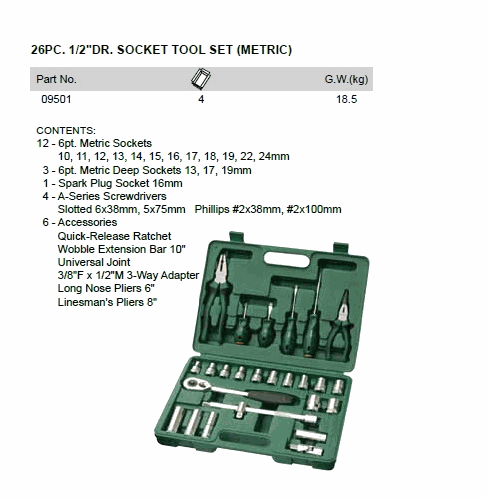 SATA 09501 26PC. 1/2" DR. SOCKET TOOL SET (METRIC) (1/2inch,26 chi tiết) | EMIN.CO.TH