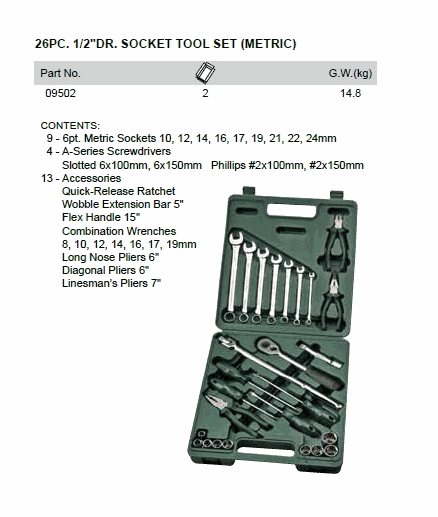 SATA 09502 26PC. 1/2inch DR. SOCKET TOOL SET (METRIC) (1/2inch) | EMIN.CO.TH