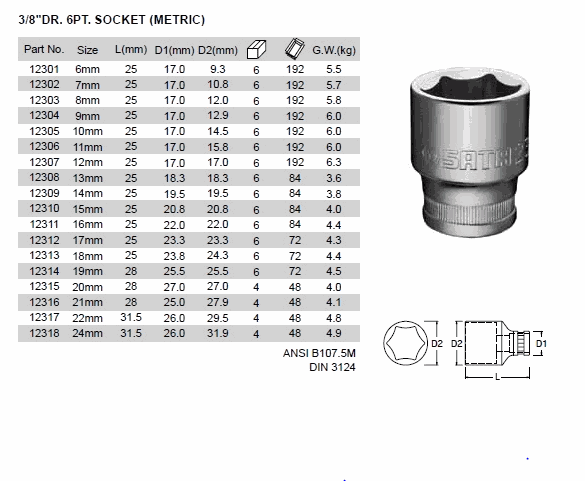 SATA 12311 3/8inch DR. 6PT. SOCKET (S.A.E.)/(METRIC) (16mm) | EMIN.CO.TH