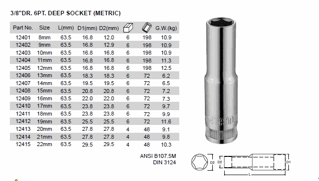 SATA 12408 DR. 6PT. DEEP SOCKET (3/8inch,15mm) | EMIN.CO.TH