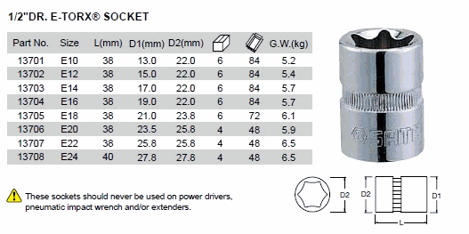 SATA 13702 1/2inch DR. E-TORX SOCKET | EMIN.CO.TH