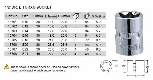 SATA 13708 1/2inch DR. E-TORX SOCKET (1/2inch) | EMIN.CO.TH
