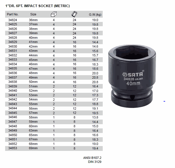 SATA 34830 1inch DR IMPACT SOCKET (1inch,42mm) | EMIN.CO.TH