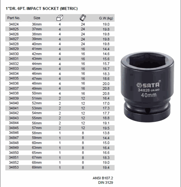 SATA 34841 1inch DR IMPACT SOCKET (1inch,53mm) | EMIN.CO.TH