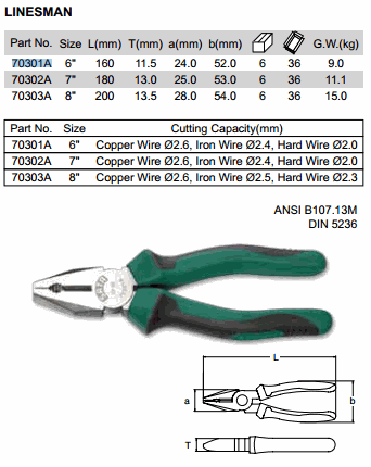SATA 70301A LINESMAN PLIER 6 inch (6 inch) | EMIN.CO.TH