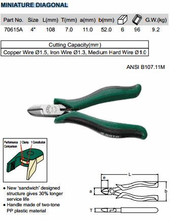 SATA 70615A MINIATURE DIAGONAL PLIER 4 INCH (ø1.5mm) | EMIN.CO.TH