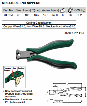 SATA 70616A MINIATURE END NIPPERS PLIER 4 INCH (ø1.5mm) | EMIN.CO.TH