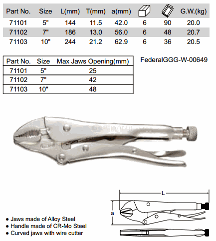 SATA 71103 CURVED JAW LOCKING PLIERS (10 Inch, ø48mm) (10 Inch, ø48mm) | EMIN.CO.TH
