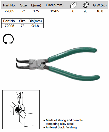 SATA 72005 RING - INTERNAL CLOSE CURVED (7 inch, 12-65 mm) | EMIN.CO.TH