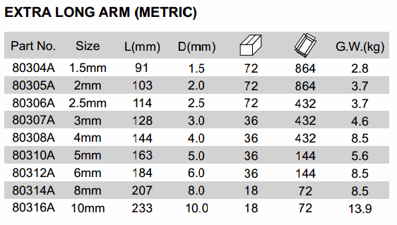 SATA 80308A EXTRA LONG ARM (METRIC,4mm) | EMIN.CO.TH