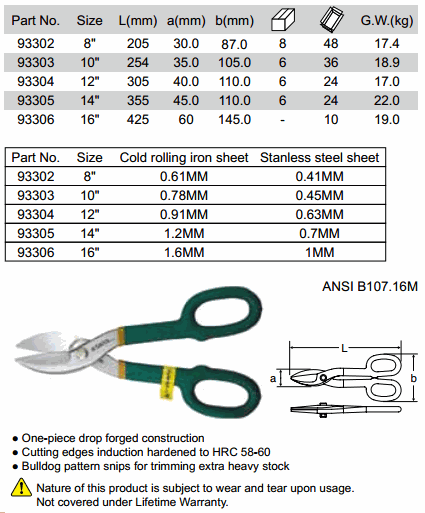 SATA 93304 STRAIGHT PATTERN SNIPS (12 inch, 305 mm) | EMIN.CO.TH