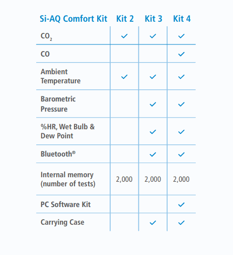 Si-AQ Comfort 04 measuring : CO2 (0-5000ppm) / CO (0-500 ppm) / ambient temperature / relative humidity / wet temperature / dew point temperature / atmospheric pressure