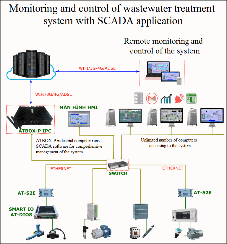 Normally, wastewater treatment plants are large, divided into many areas. Therefore, the application of SCADA system is very important for the purpose of remote system monitoring - saving costs - optimizing human resources.
