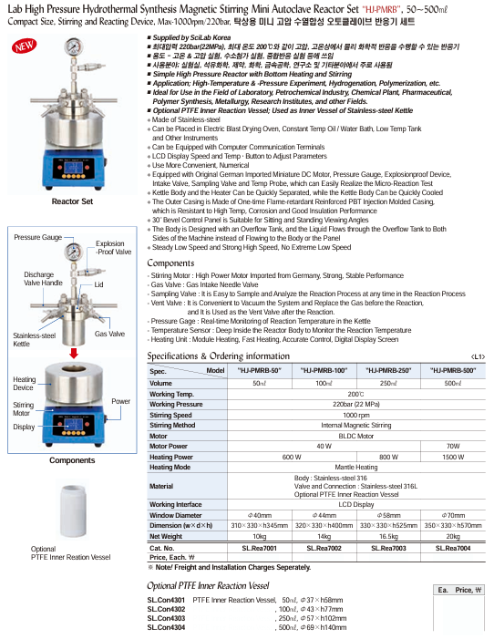 SciLab HJ-PMRB-100 Lab High Pressure Hydrothermal Synthesis Magnetic Stirring Mini Autoclave Reactor Set (100ml) | EMIN.CO.TH