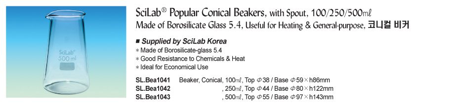 SciLab SL.Bea1043 Popular Conical Beakers (500ml; Spout) | EMIN.CO.TH