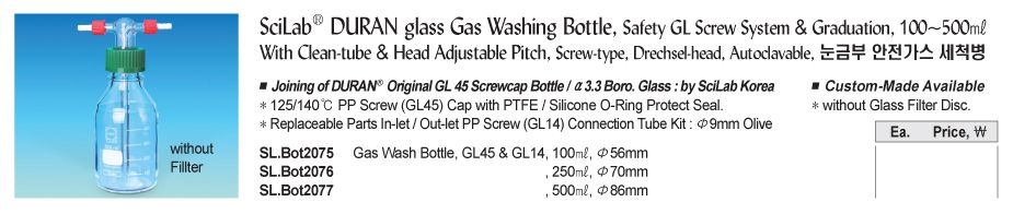 SciLab SL.Bot2075 DURAN glass Gas Washing Bottle (100ml) | EMIN.CO.TH