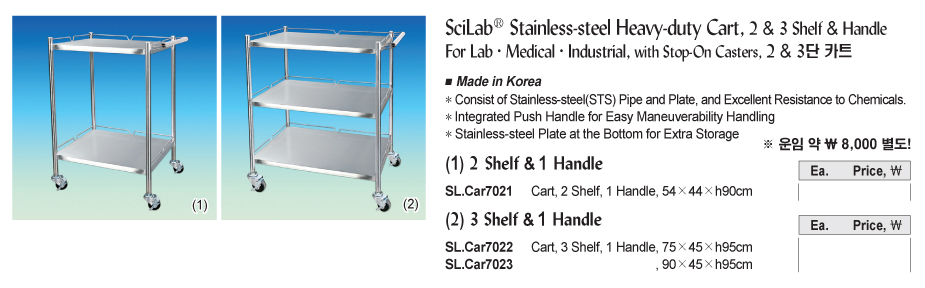 SciLab SL.Car7022 Stainless-steel Heavy-duty Cart (3 shelves, 1 handel, 75×d45×h95cm) | EMIN.CO.TH