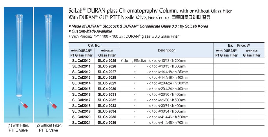 SciLab SL.Col2034 DURAN glass Chromatography Column (PTFE valve, Φ34xh500mm) | EMIN.CO.TH