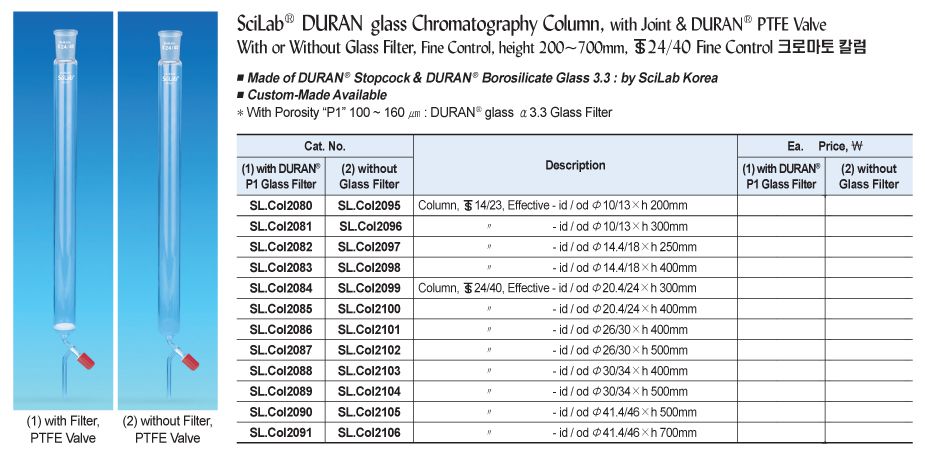 SciLab SL.Col2090 DURAN glass Chromatography Column (PTFE Valve, Φ46xh500mm) | EMIN.CO.TH