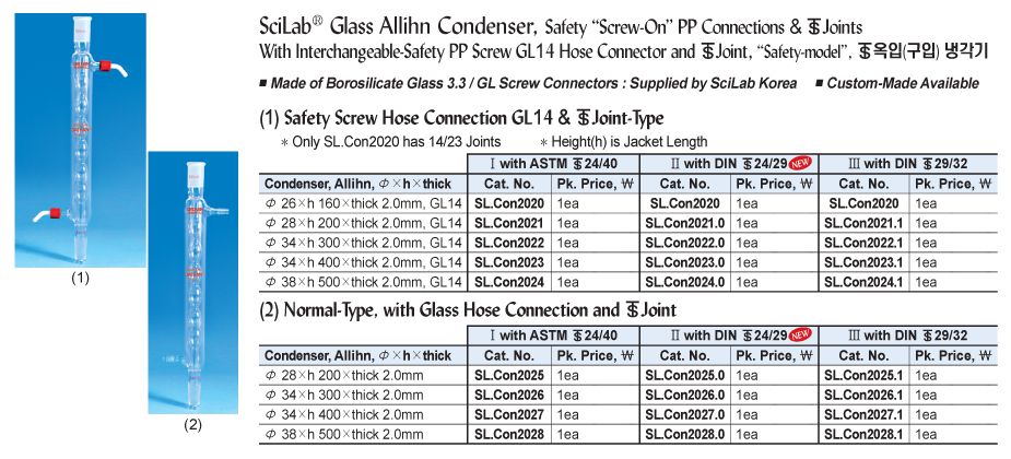 SciLab SL.Con2027 Glass Allihn Condenser (Normal-Type, 24/40 Joints) | EMIN.CO.TH