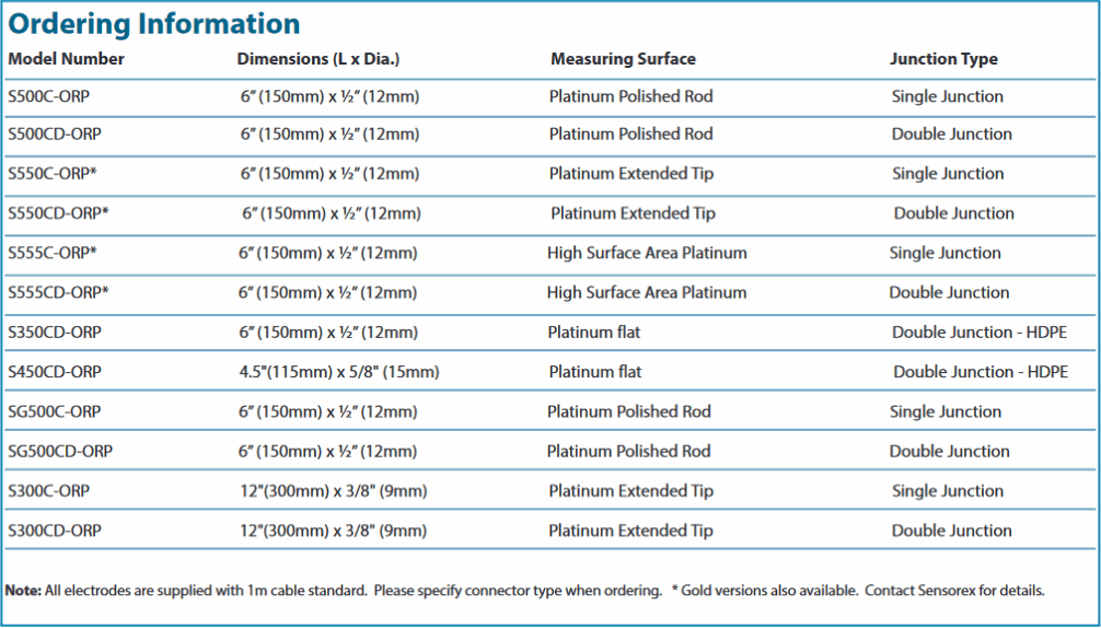 SENSOREX S300CD-ORP ORP Electrode (+/-2000mV, double junctio) | EMIN.CO.TH