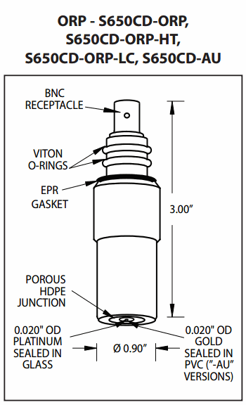 SENSOREX S650CD-ORP ORP Electrode (+/- 2000mV, flat) | EMIN.CO.TH