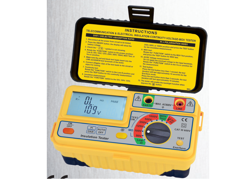 Test voltage (DC V): 50V 100V 125V 250V 500V 1000V