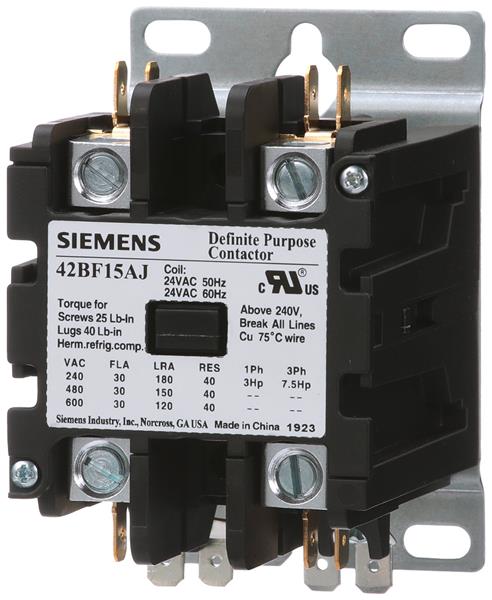 SIEMENS 42BF15AF Electromechanical Contactors Contactor, 42DP,30A,2P,Open,120V | EMIN.CO.TH