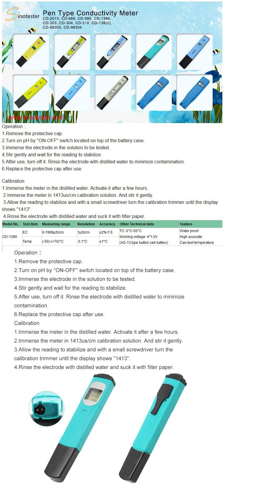 Sinotester CD-1386 Pen Type Conductivity Meter (0~1999μs/cm) | EMIN.CO.TH