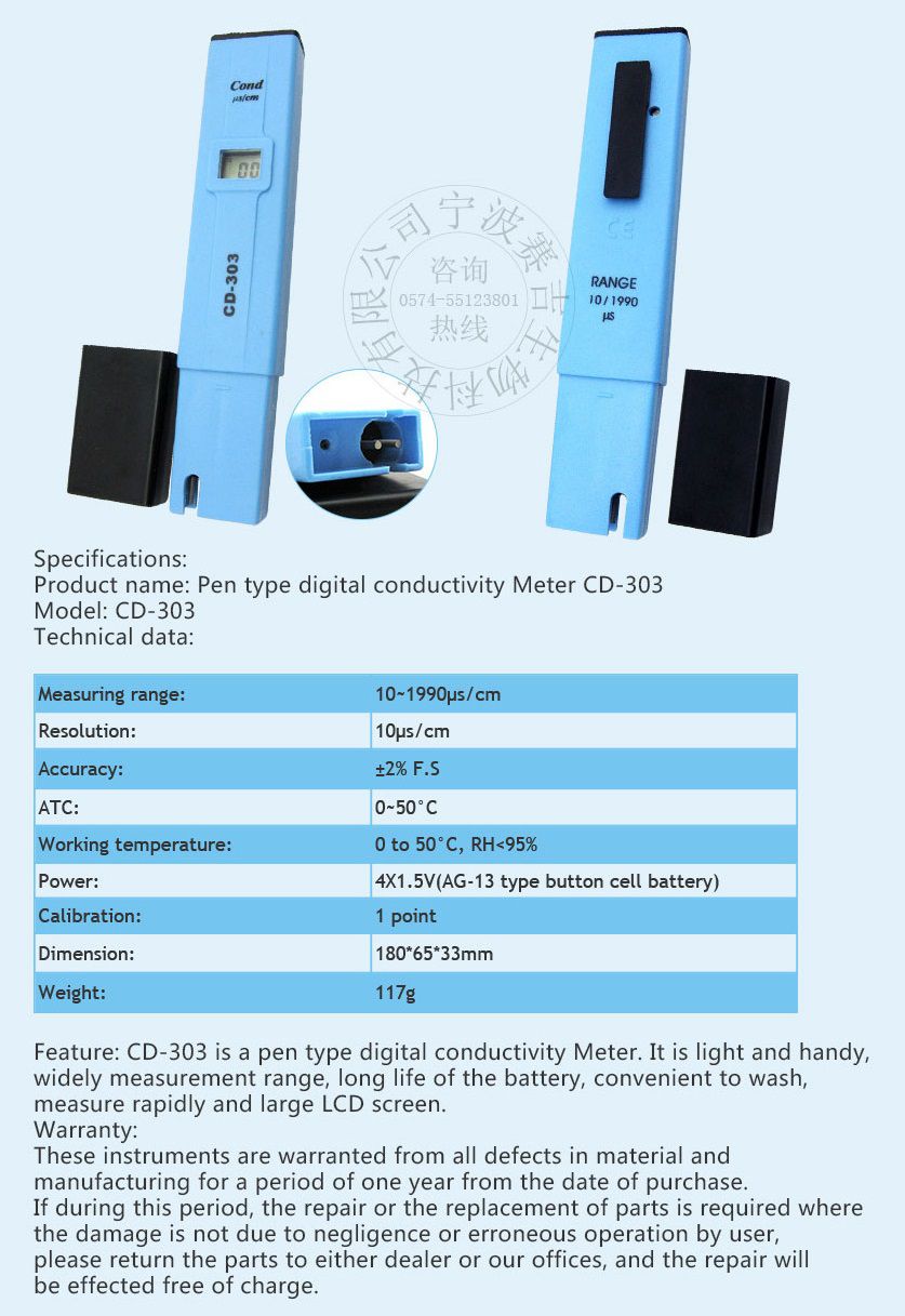 Sinotester CD-303 Pen Type Conductivity Meter (10~1990μs/cm) | EMIN.CO.TH
