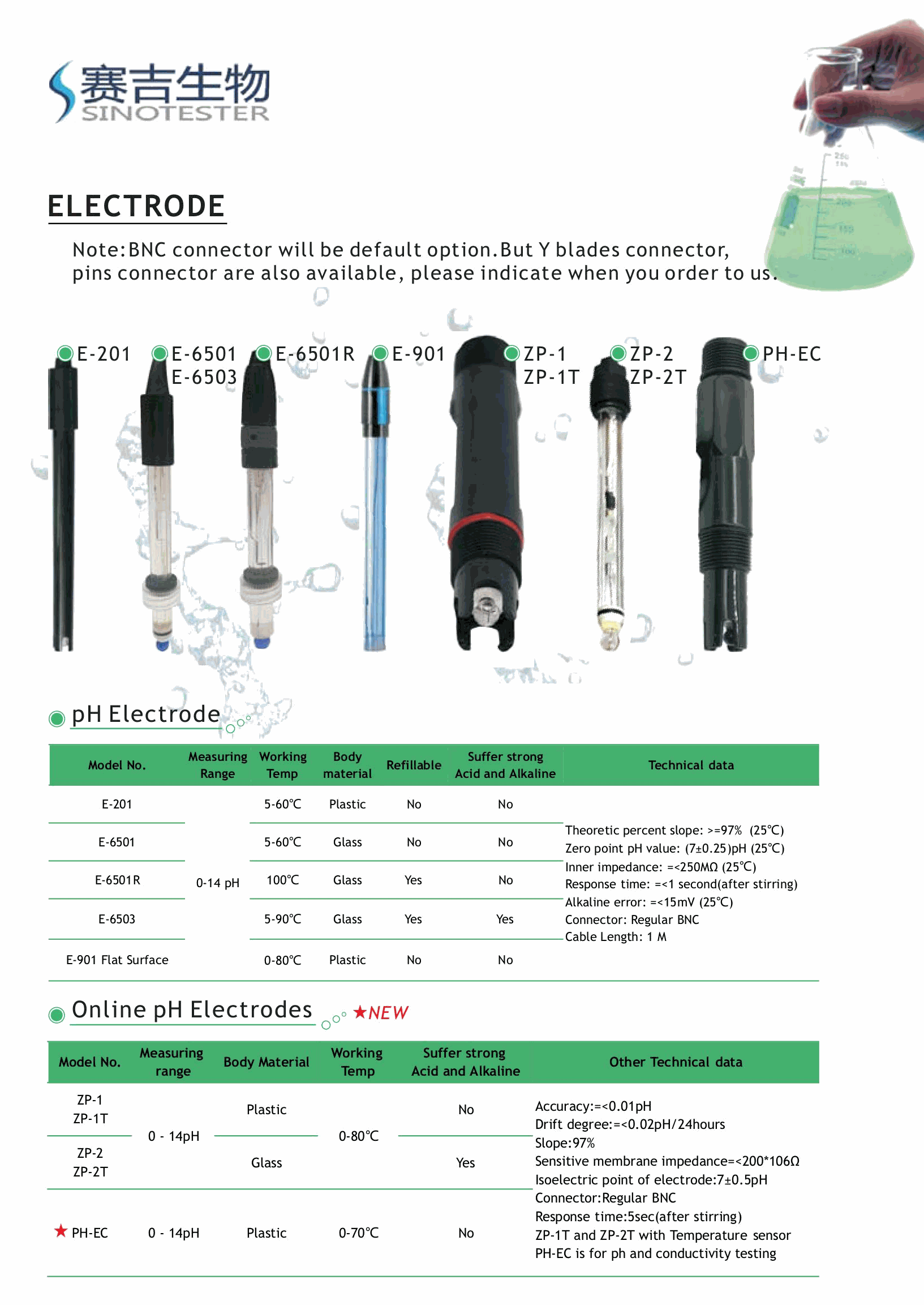 Sinotester E-6503 pH Electrode (0~14pH, 5~90℃) | EMIN.CO.TH