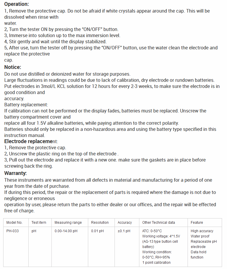 Sinotester PH-033 Pen Type pH Meter (0.0~14.0pH, ±0.1pH) | EMIN.CO.TH