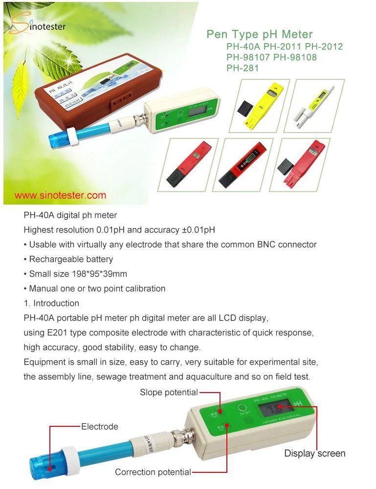 Sinotester PH-40A Portable PH Meter (0.00~14.00pH, ±0.01pH) | EMIN.CO.TH