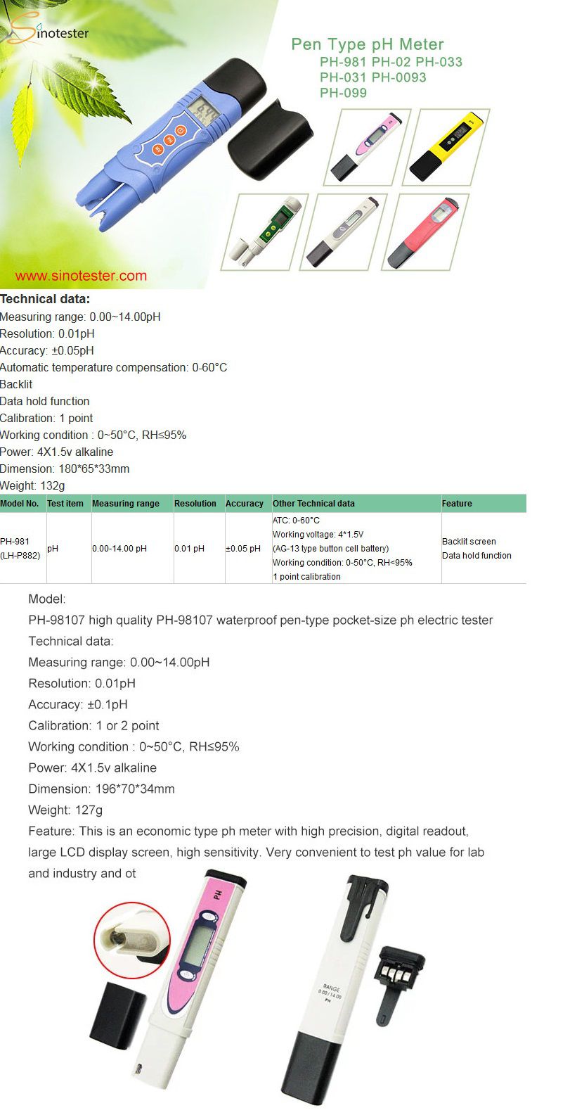 Sinotester PH-981 Pen Type pH Meter (0.0~14.0pH, 0.01pH) | EMIN.CO.TH