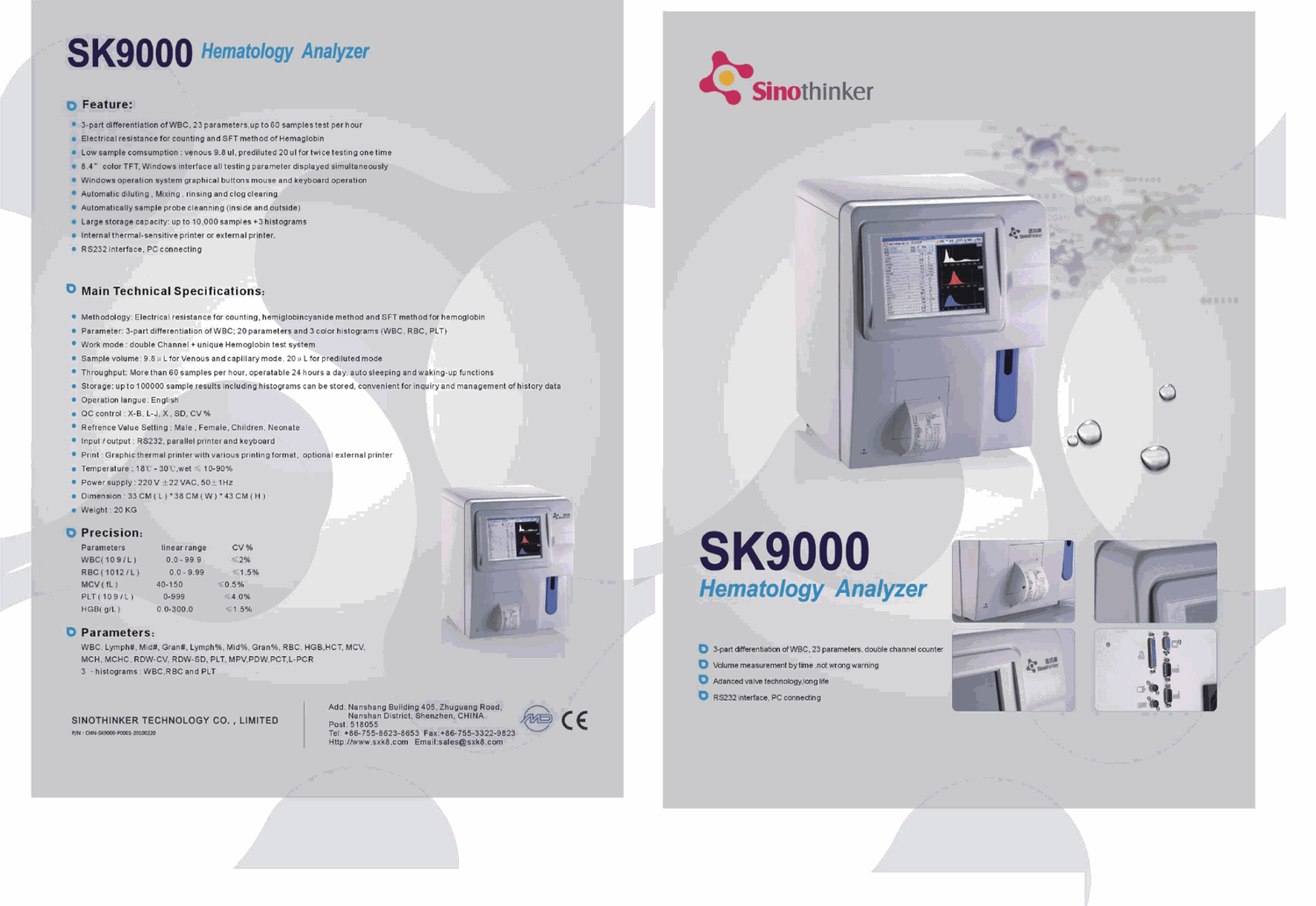 Parameter: 3-part differentiation of WBC; 20 parameters and 3 color histograms (WBC, RBC, PLT)
