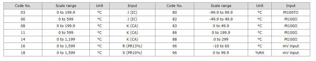 Setting range: Setting range