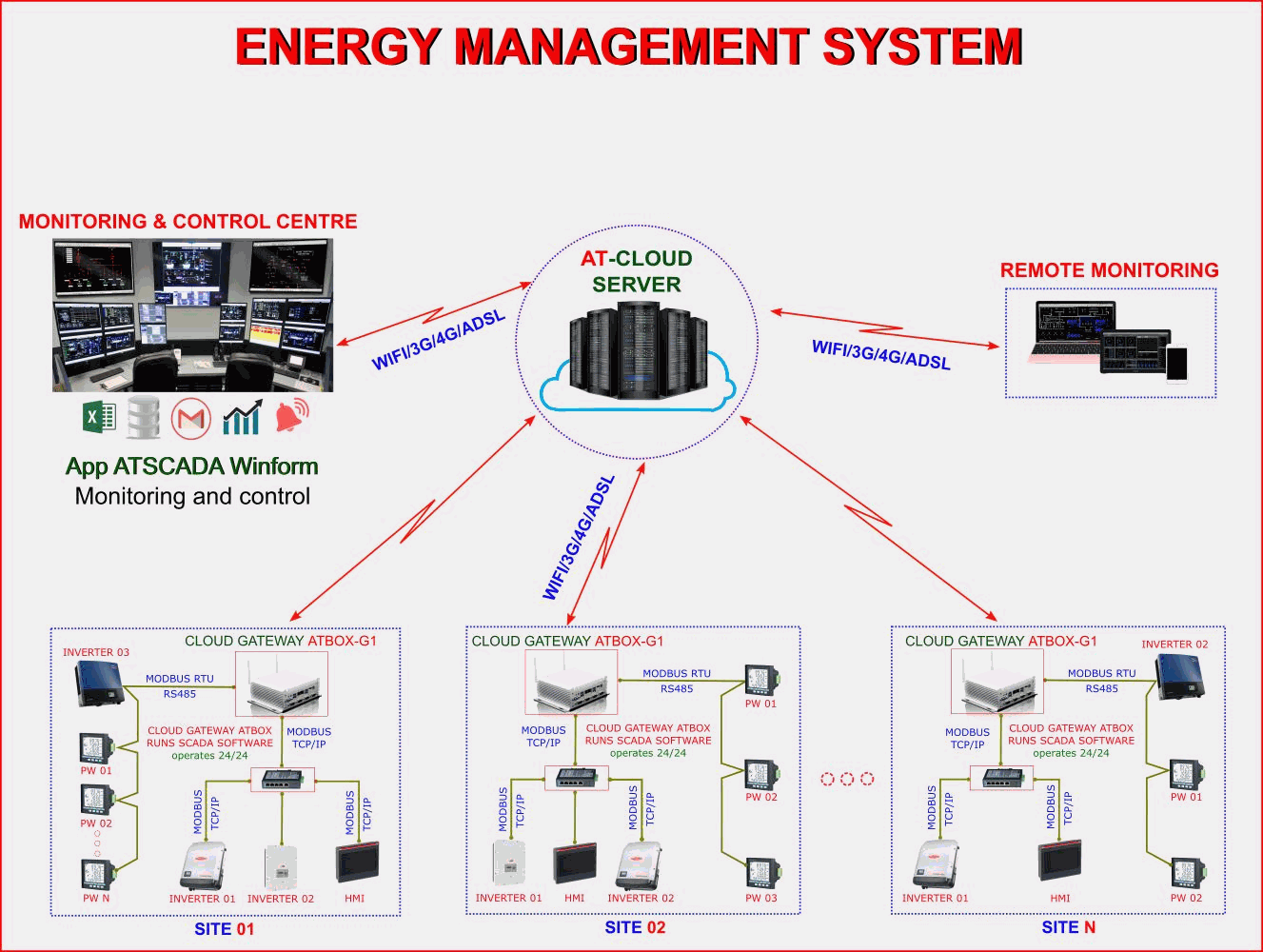 - Switches, power quality meters, transformers, PV Compiner, .. that monitor environmental factors such as solar radiation, ambient temperature, panel temperature, wind speed.