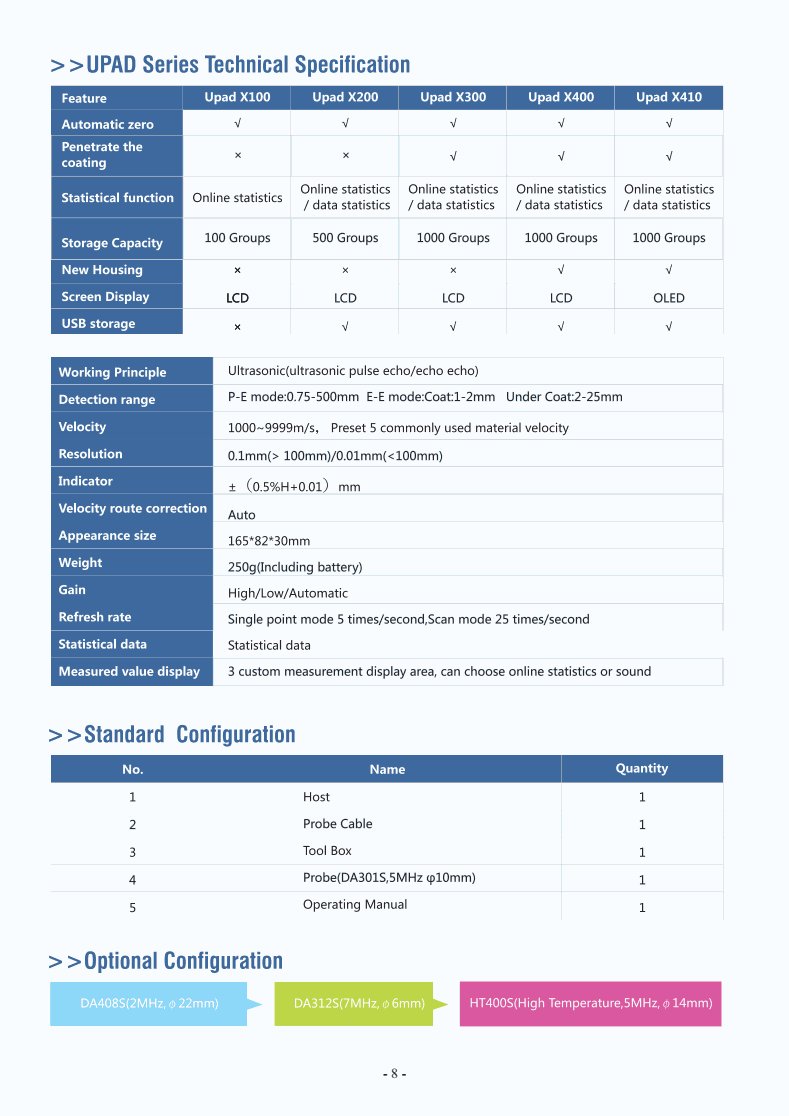 Standard: Host, Probe Cable, Tool Box, Probe(DA301S, 5MHz Ø10mm), Operating manual