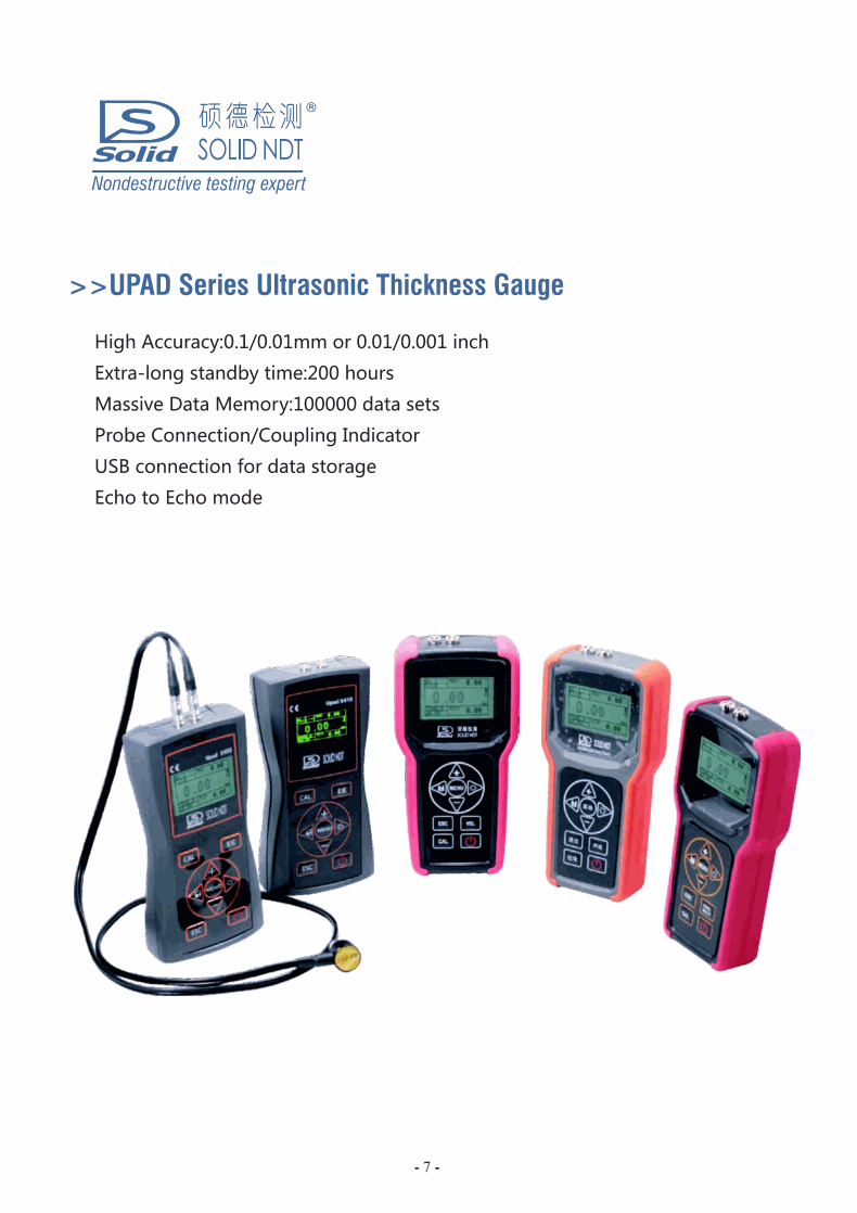 Optional: Probe DA408S(2MHz, Ø22mm), DA312S(7MHz, Ø6mm), HT100S(High Temperature, 5MHz, Ø14mm)