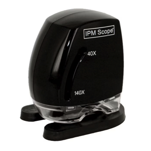 The IPM Scope Digital Cameral combines a digital camera, precision optics and LED lighting into a powerful handheld microscope and imaging software package. Zoom in on fine details of plant disease symptoms or insects. Place the IPM Scope over the leaf and view the magnified image right on your computer screen. 40x-140x magnification, resolution to 4 microns.