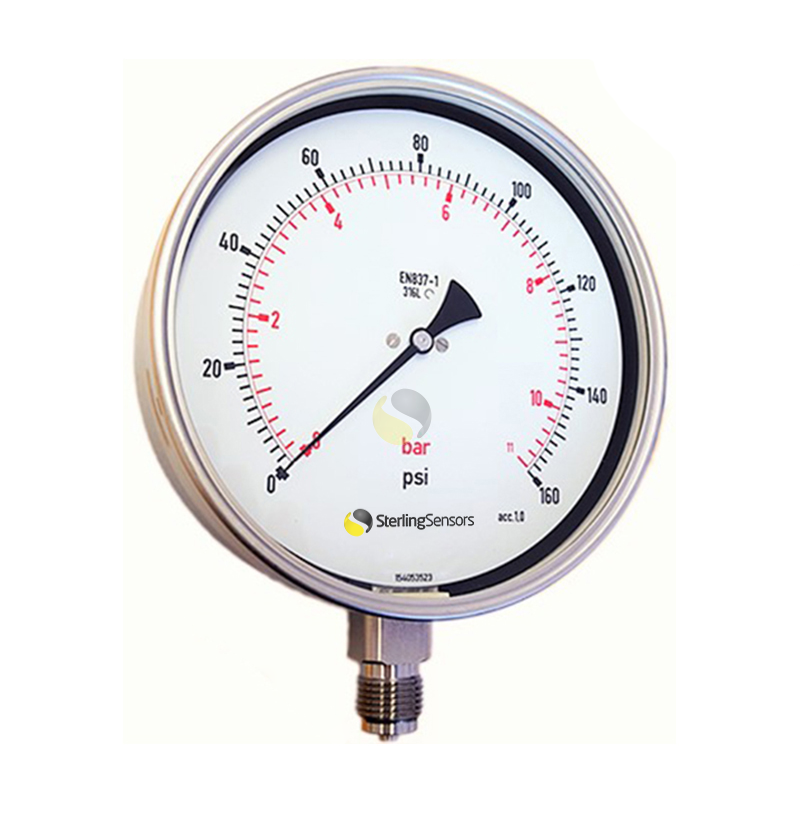 Sterling Sensors RCh16037B Stainless Steel Pressure Gauge (0-7 bar (0-100 PSI), 1/2" BSP Parallel) | EMIN.CO.TH