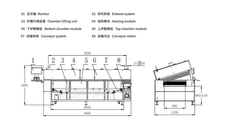 Heating zone length: 3000mm