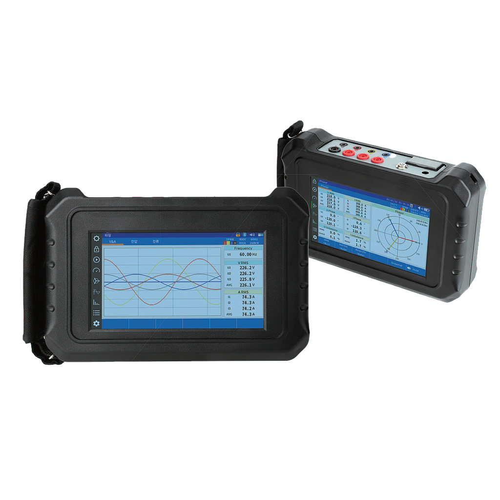 Simultaneously measures active/ reactive/ apparent power, power factor, RMS voltage/ current, phase angle and neutral line current