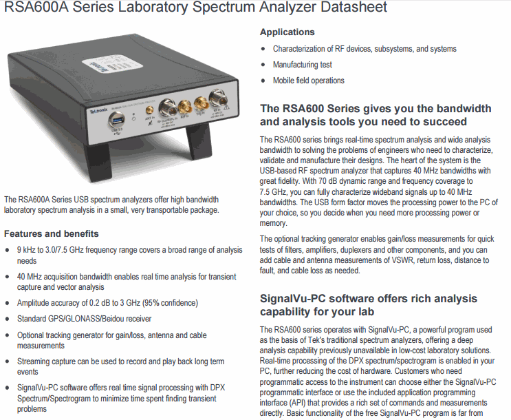 TEKTRONIX RSA603A Spectrum Analyzer (9kHz〜3GHz) | EMIN.CO.TH