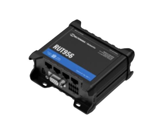 Teltonika RUT956400500 Industrial Cellular Routers Cellular Router, 4G/3G/2G/LTE CAT4, Dual SIM, WiFi 2.4 Ghz, 4 x Ethernet, 10x I/Os, RS232, RS485, GNSS (GPS), USB. Regions: Global. Universal power supply unit.