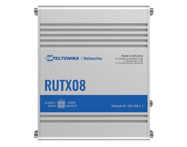 Teltonika RUTX08000200 Routers Ethernet-to-Ethernet industrial VPN router that runs on RutOS - an advanced OpenWRT based operating system and can be accessed via cloud RMS. 4 x Gigabit Ethernet. Global version. USA power supply unit.