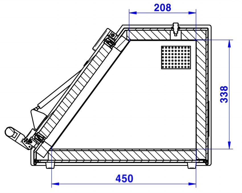 - Inside : 445(W) x 450(D) x 338(H) mm, 208(D) mm Top side.