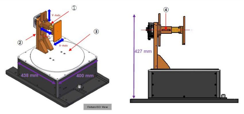 Cradle Base and Cradle rotate, 2-axis rotation system.