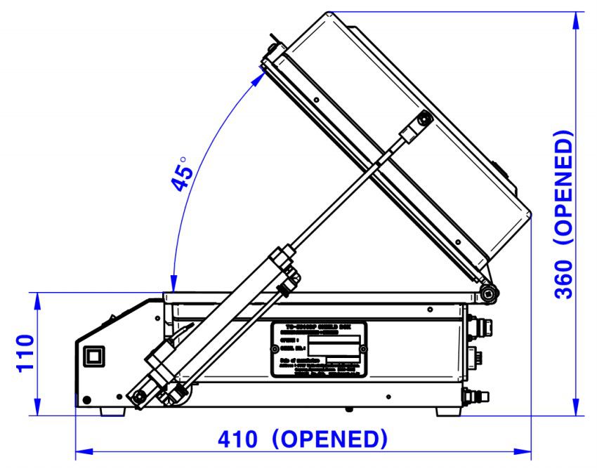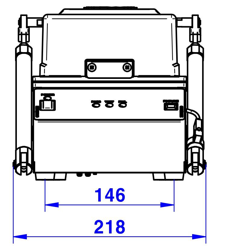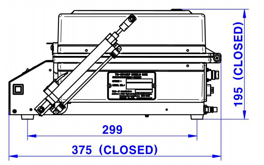 - Outside : 218(W) x 375(D) x 195(H) mm, lid closed. 410(D) x 360(H) mm, lid open.