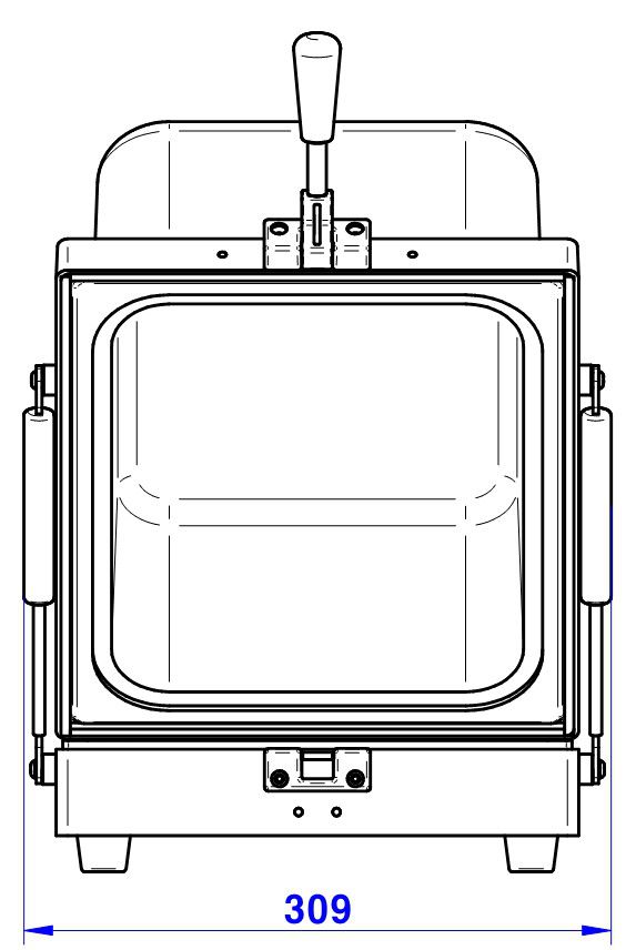 - Outside : 309(W) x 473(D) x 221(H) mm, lid closed. 442(H) mm, lid open.